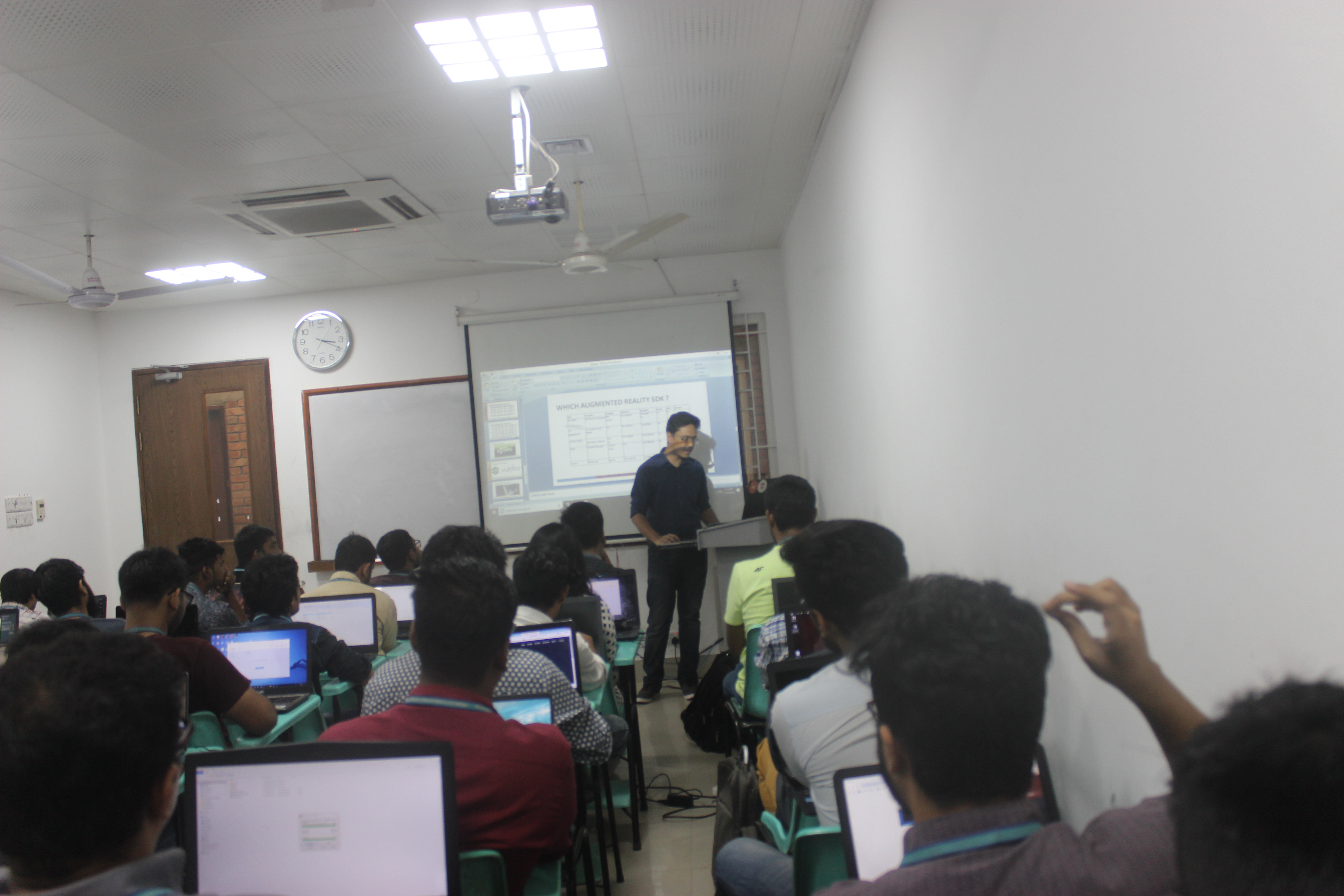 BASIS Students' Forum AIUB Chapter has organized a hands-on workshop on Augment Reality on 16th November, 2018 at AIUB Permanent Campus. Trainer: Mr. Musabbir Islam Senior Game Developer, Battery Low Interactive. Discussion Topics: 1. What is AR 2. Past, present & future of AR 3. Market value of AR 4. Existing AR Products 5.Introduction to Unity and Vuforia.. 6. Making a AR project.