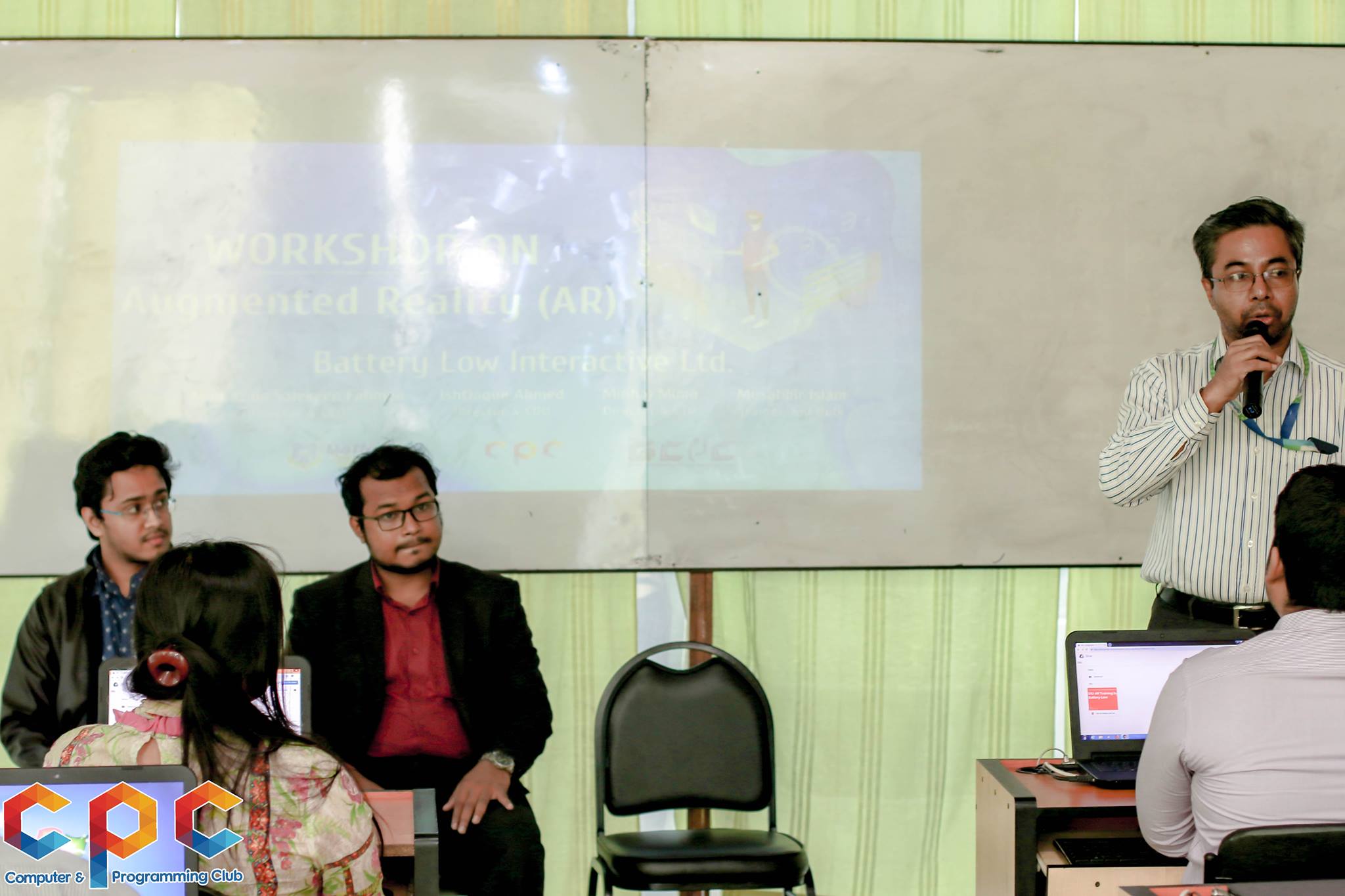 Department of Computer Science and Engineering, DIU, has organized an workshop on Augmented Reality. The event is in association with DIU CPC and GCPC. Augmented reality (AR) is an interactive experience of a real-world environment where the objects that reside in the real-world are "augmented" by computer-generated perceptual information. Musabbir Islam was the trainers of this workshop. The head of department CSE, Dr. Syed Akhtar Hossain sir also present there.